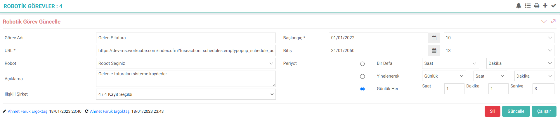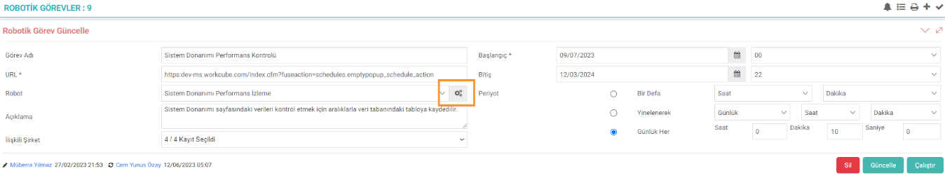 Not: Robot alanından seçilen Robot'ların WO fuseaction'u URL alanına tanımlamaya gerek kalmaması için Tipi "Robot" olarak seçilen WO'lar doğrudan File Path alanındaki ilişkili dosya ile çalışabilir hale getirildi.