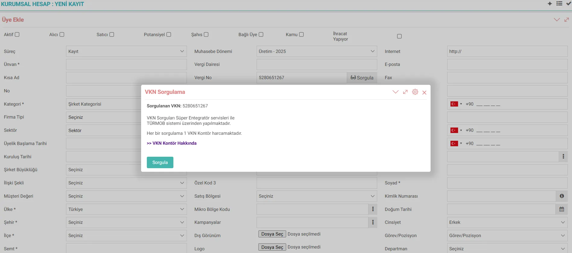 - VKN sorguları TÜRMOB sistemi üzerinden yapılır.