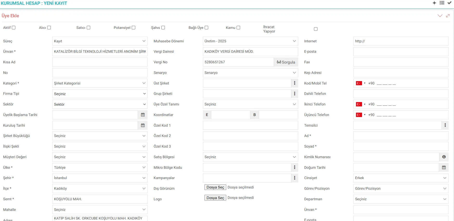 Yol: ERP > Satış-Dağıtım > Müşteri-Tedarikçi > Kurumsal Hesaplar